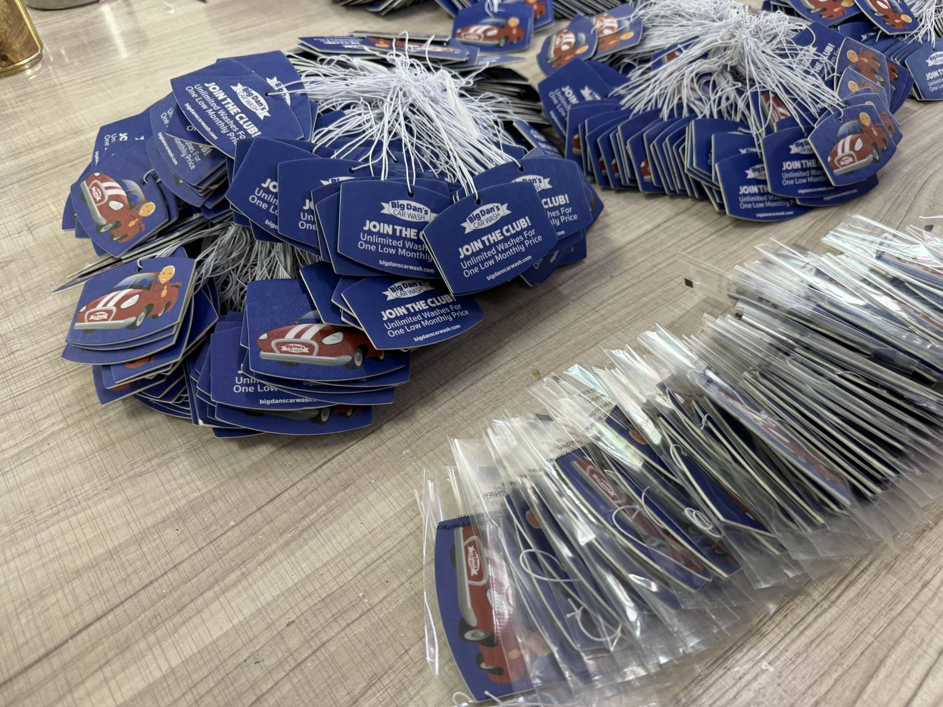 Is your goal to get your brand in front of your customers with HelloAirFreshener memorable shapes and scents? Or is your goal to work with HelloAirFreshener to create custom die cut air fresheners and custom scents so that you can create a unique in-car experience for your customers? Whatever your goals, HelloAirFreshener design consultants will work with you to make sure that your branded car air fresheners are something that you’re happy with and something that you’re excited to have representing your brand.